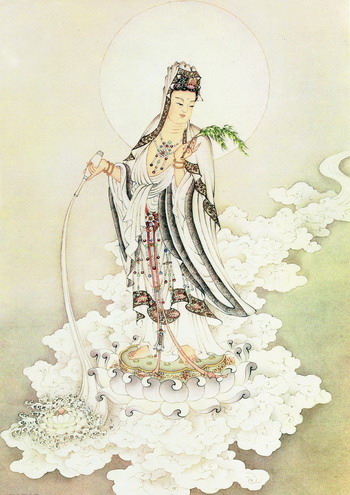 老人家不免紧张万分,赶忙俯视四周园地,全力搜寻。奈因时值黄昏,天色转暗,菜园遍地青菜及杂草,那玉米粒大的小耳环怎能找到呢?找得头昏眼花,心情焦虑,又有什么办法啊!忽然老夫人想起,何不求求早晚礼拜念诵的“大慈大悲救苦救难的观世音菩萨”帮忙呢?灵机一动,即合掌闭起双眼,大声求道:“救苦救难的观世音菩萨,弟子不小心撞到竹竿,遗失了心爱的耳环,心慌意乱遍寻不着,正处困境。敬请慈悲的大士,赶快显显威灵,帮弟子找回,感激不尽。”如此诚恳观想祈求了一会儿,张开双眼探视身边,啊!前面仅伸手可到的近处地上,那黄-色闪闪的小东西,不是找了半天始终未见的耳环么?