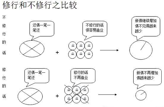 累世的债 +这辈子新增加的债 -已还掉的债 = 我们目前要还的债
