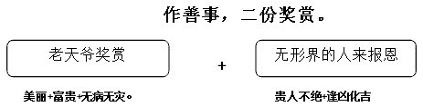 上天的奖赏是:让我们这辈子的好命,美丽,富贵,做事顺顺利利……各种好的事情都会如愿。
