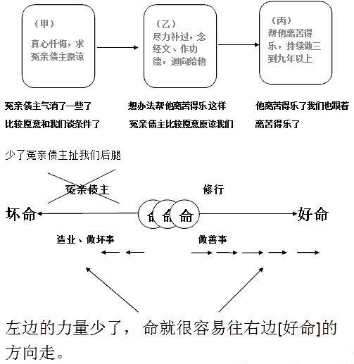 一些人可能会认为:要念那么多经文,要做那么多功果给他们,真的好辛苦。但如果仔细想一想,您会发现,其实这是非常便宜的事。比起这些冤亲债主让我们得癌症、让我们事业失败、让我们家庭出问题、让我们子女忤逆……只念些经文、做些功德,不是太便宜了吗?