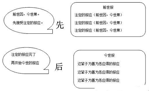 等这些注定的福报或恶报完了,再开始这一世做好事或坏事的福报或恶报。